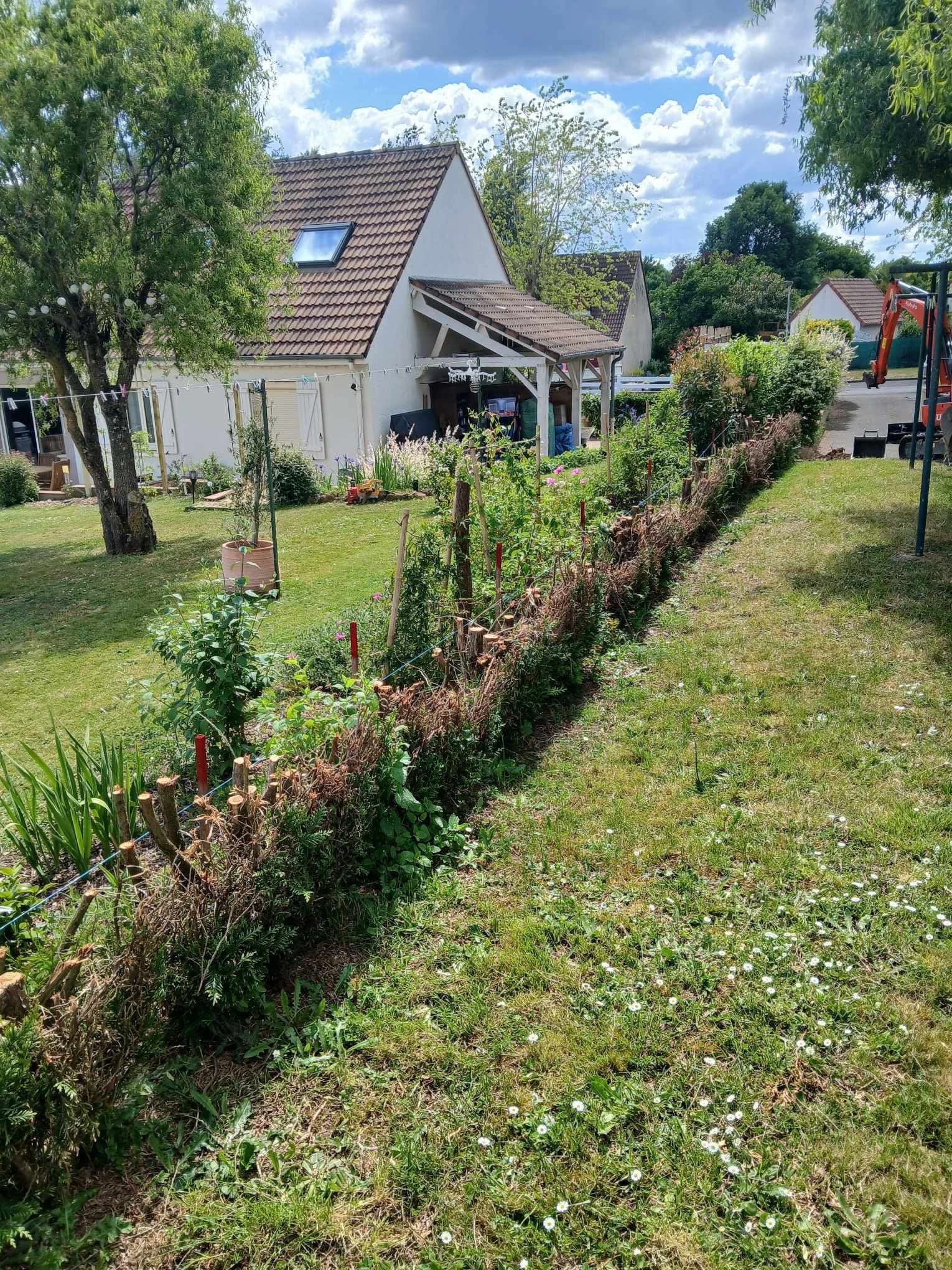 - Démolition des éléments existants (arrachage des souches de thuyas).